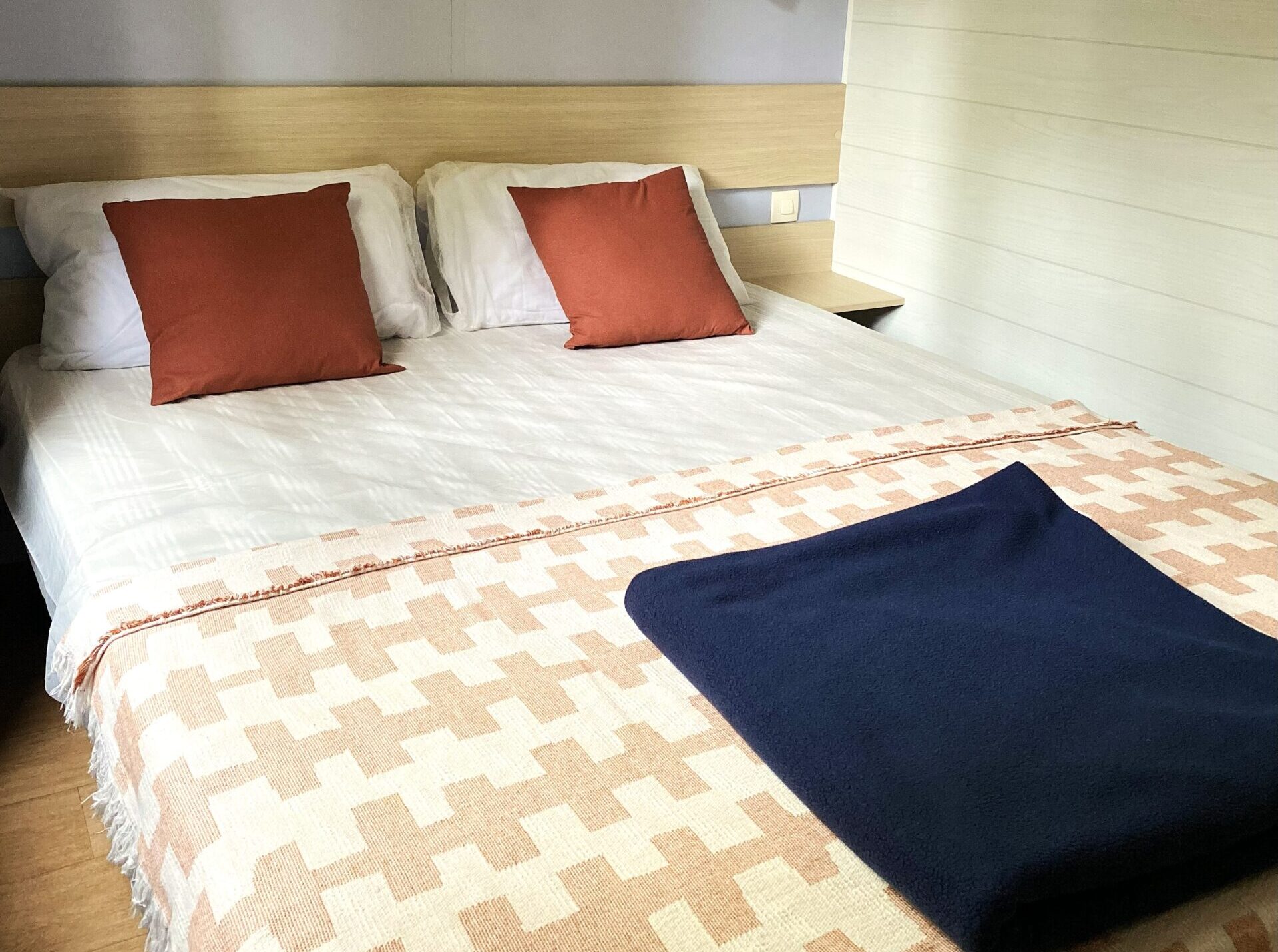 - 1 slaapkamer met 1 tweepersoonsbed van 140 x 190 cm, dekens en kussens verstrekt